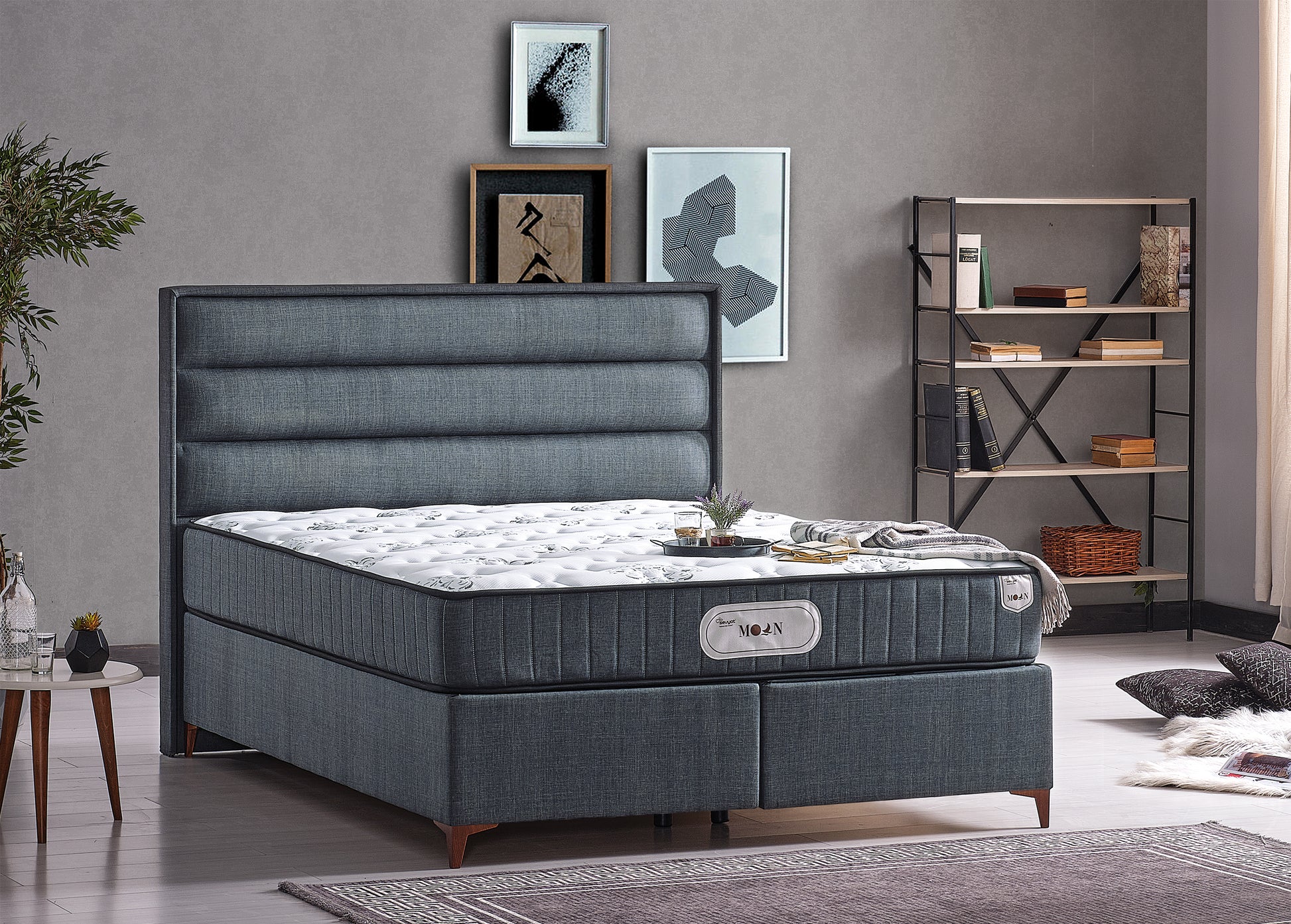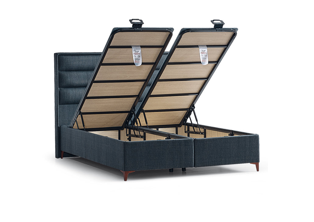 If you prefer minimalism in decoration, the Moon Set is for you. It provides a peaceful sleep with its high storage base and stylish headboard with simple lines.